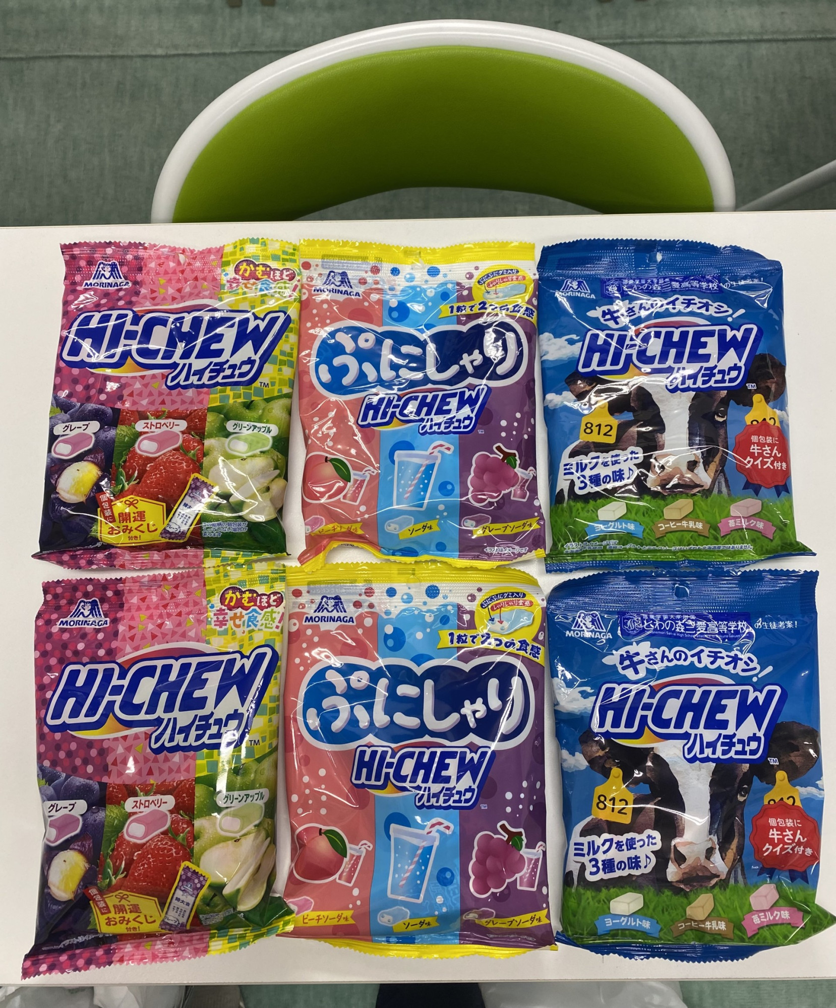 授業の合間にチョコレートを食べたり、ハイチュウを食べたり等、気分転換(集中力の持続のため)を図りながら授業を行うのですが、中2男子生徒、中1女子生徒の保護者様方から、たくさんの差し入れを頂きました。