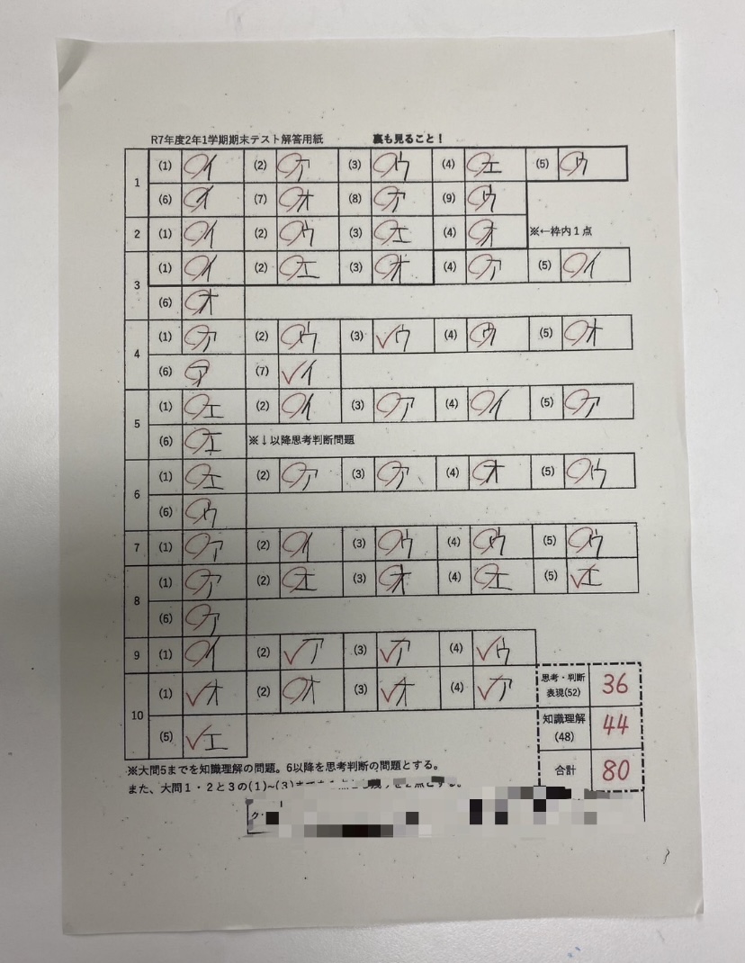 お母さんは、数学5、理科5をずっと維持していた典型的な理数系だったのですが、今回、息子さんは数学は今ひとつで、苦手だった筈の英語での高得点となりました(驚)