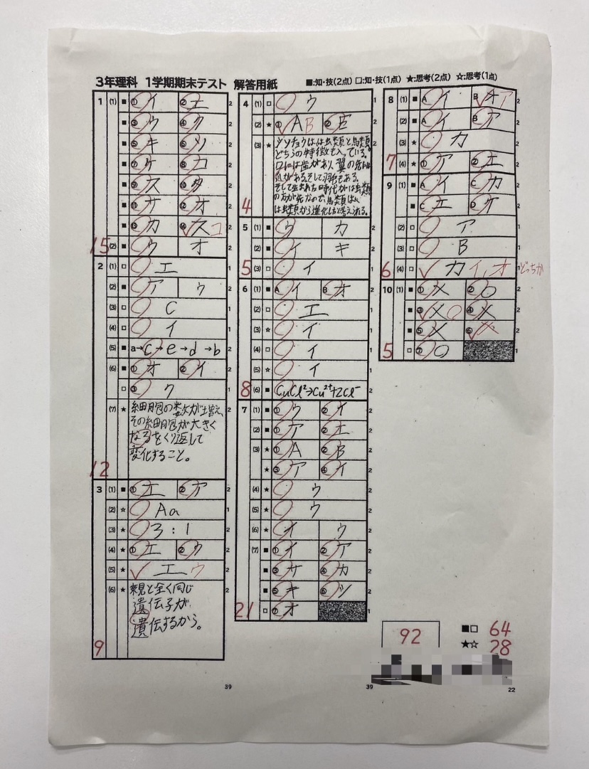 そして、もう1人の男子生徒(お母さんは卒業生)も理科92点で、見事に400点以上となりました✨