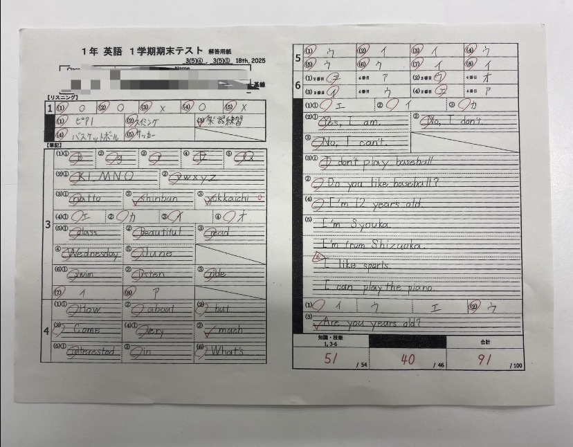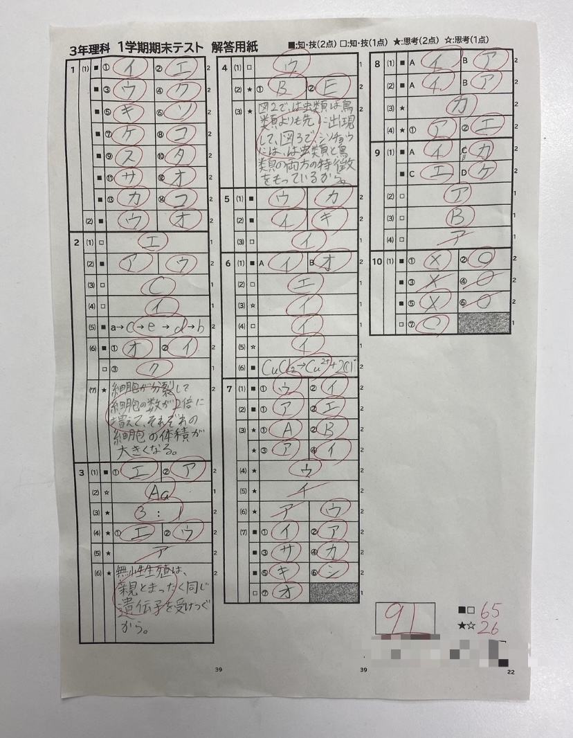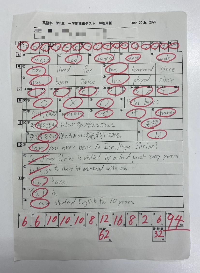 数学100点の生徒が、社会に続いて英語94点、理科91点と、国語以外はすべて90点以上という、これまでで最高の成果を上げました✨💮