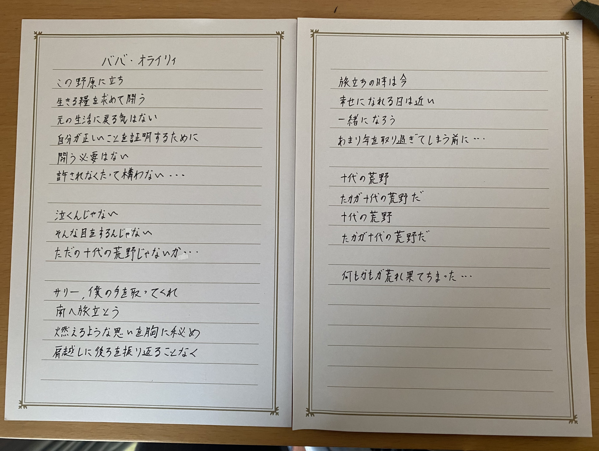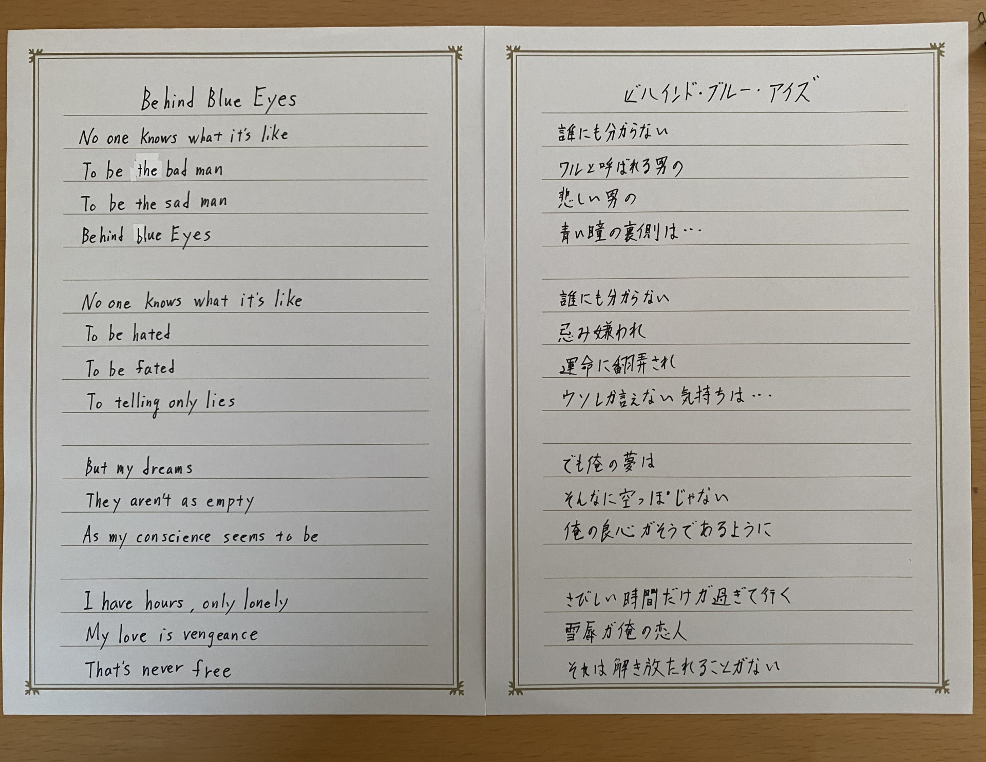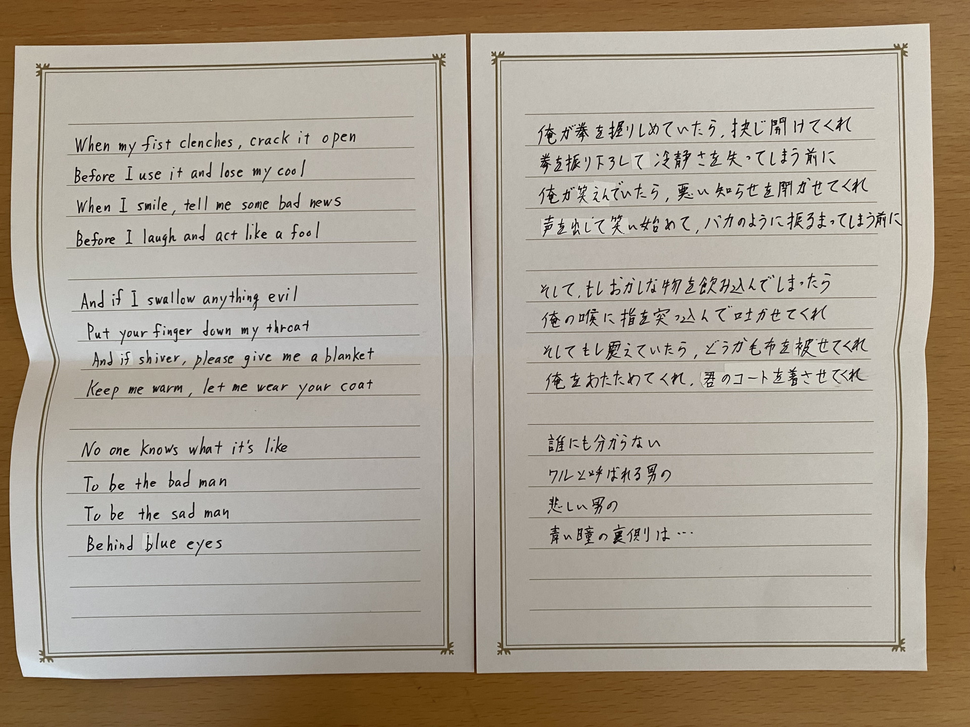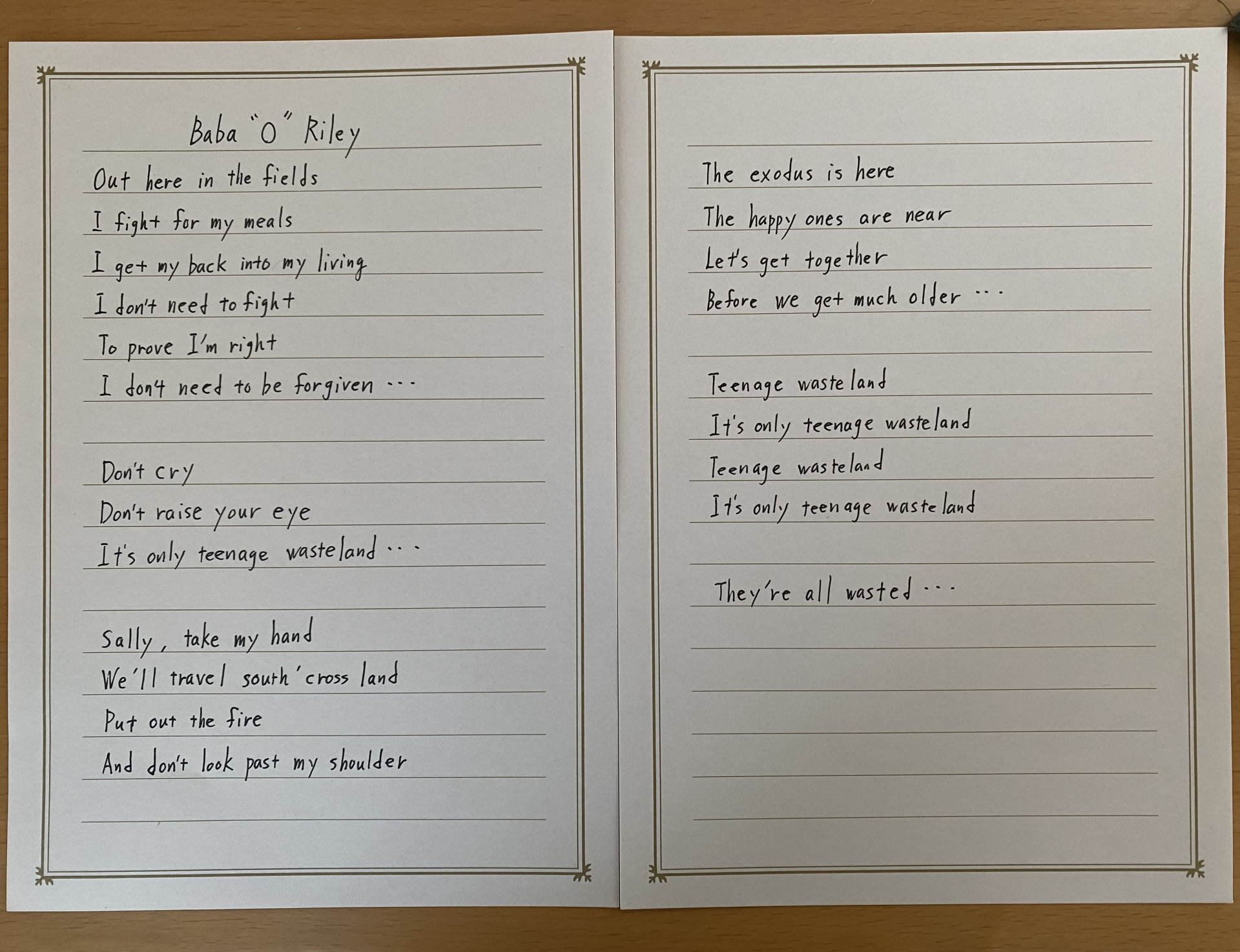 大好きだった男の子が、心を痛めてしまっているということを知り、英国のThe Whoというバンドが1971年に発表した、Who’s Nextというアルバムから2曲を選んで手紙に託しました。